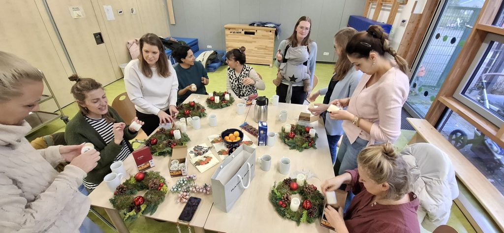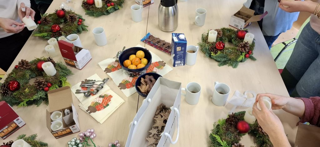 Wunderschöne Adventskränze für die Gruppen waren das Ergebnis unseres Elterncafés im November. Der Förderverein übernahm die Kosten und so gab es eine schöne Adventsüberraschung. Vielen Dank allen fleißigen Händen.